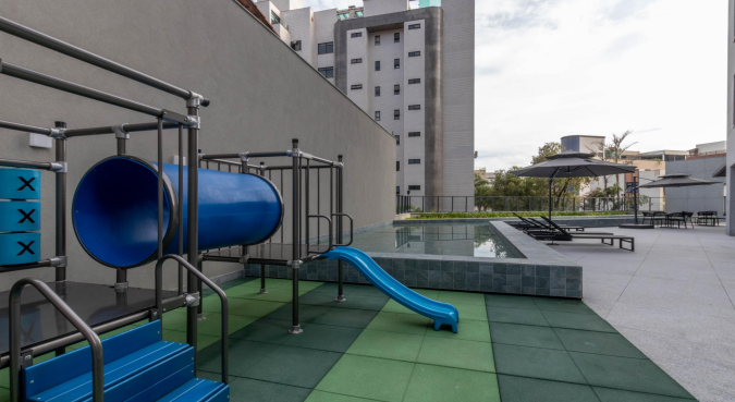 O prédio oferece infraestrutura completa e moderna: piscina climatizada, salão de festas com varanda, espaço gourmet, churrasqueira, sauna com ducha, fitness, playground e carregador para veículo elétrico. Além disso, possui guarita blindada, torre única e fachada aerada em granito e porcelanato, garantindo segurança, durabilidade e sofisticação.