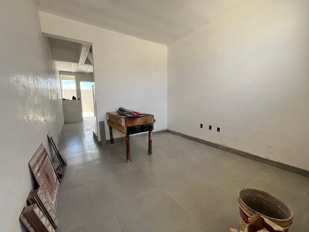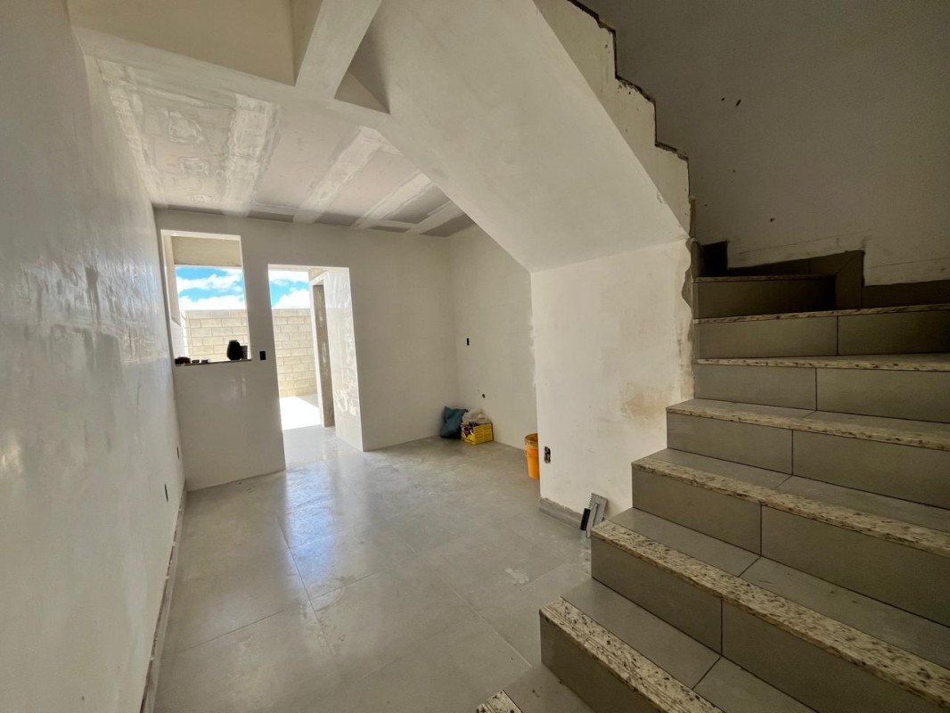 Casa nova duplex de dois quartos amplos, sacada em blindex, banho social na parte de cima e na parte de baixo sala, cozinha estilo conceito aberto, bancada em granito, banho social, área de lavar nos fundos pra fazer espaço gourmet,1 vaga de garagem,